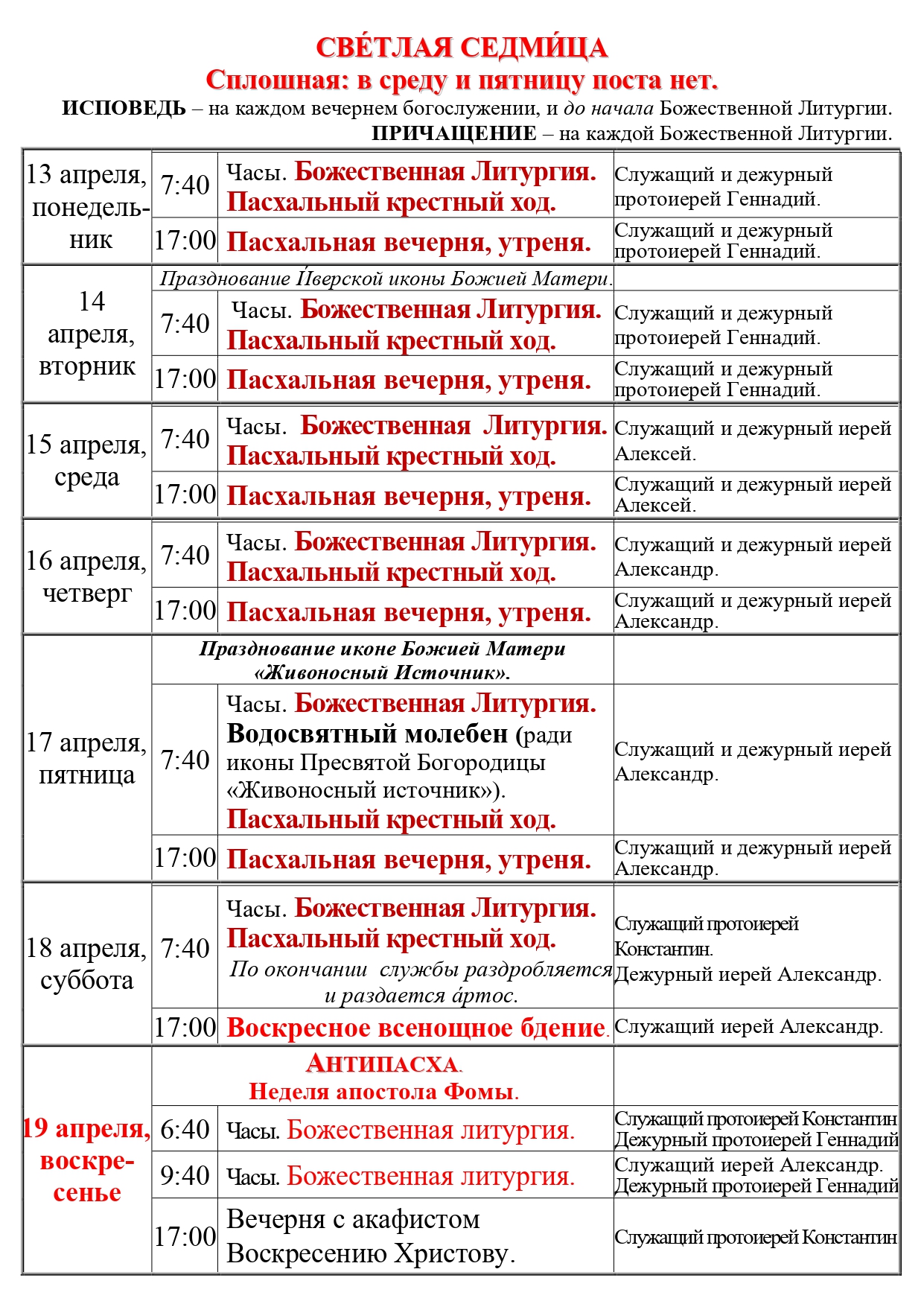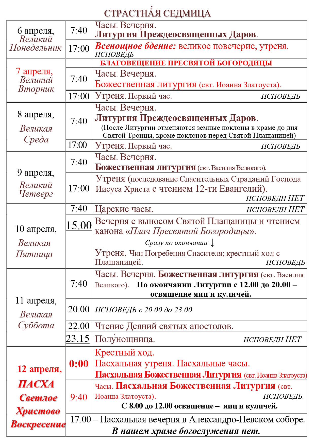 Время выхода расписания богослужений — каждая пятница, 17.00.
